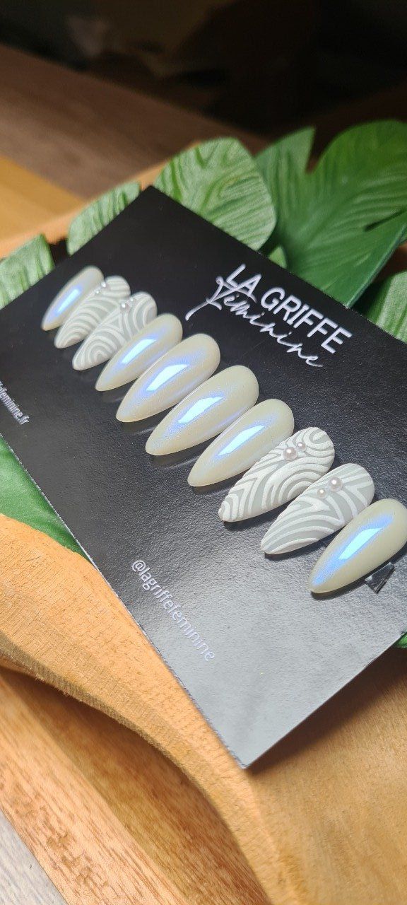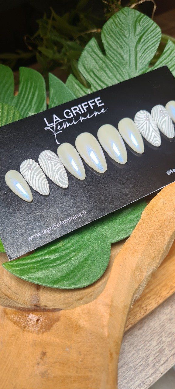 Transformez vos ongles en une œuvre d'art avec notre kit de press on nails blanc milky irisé. Ce magnifique ensemble allie élégance et modernité, offrant une finition douce et lumineuse qui capte la lumière à chaque mouvement.