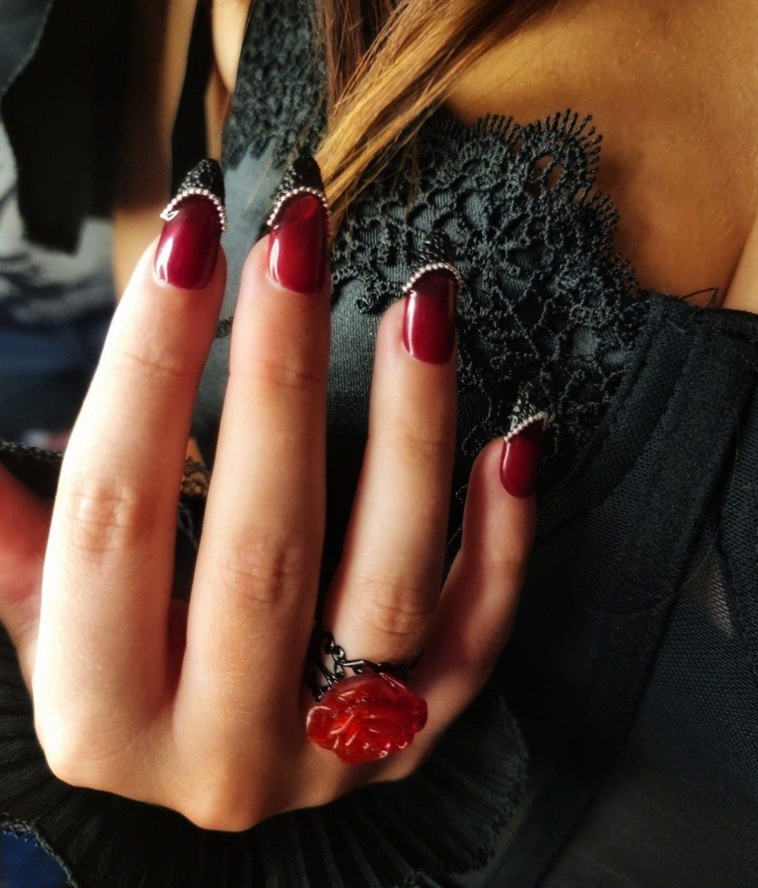 Cette box comprend 30 ongles dans des teintes captivantes de noir profond et de rouge sang, parfaits pour ajouter une touche mystérieuse et audacieuse à votre look.