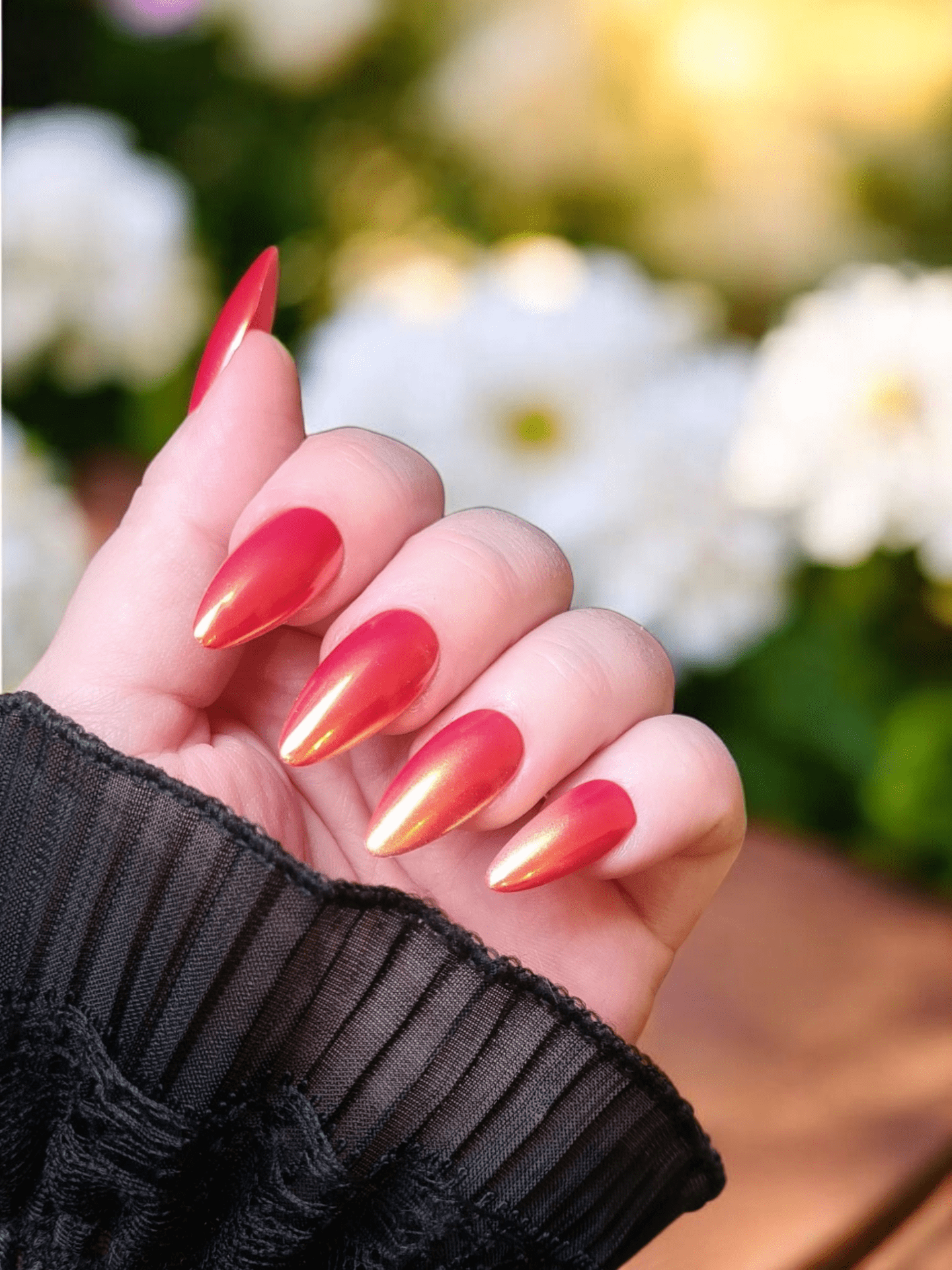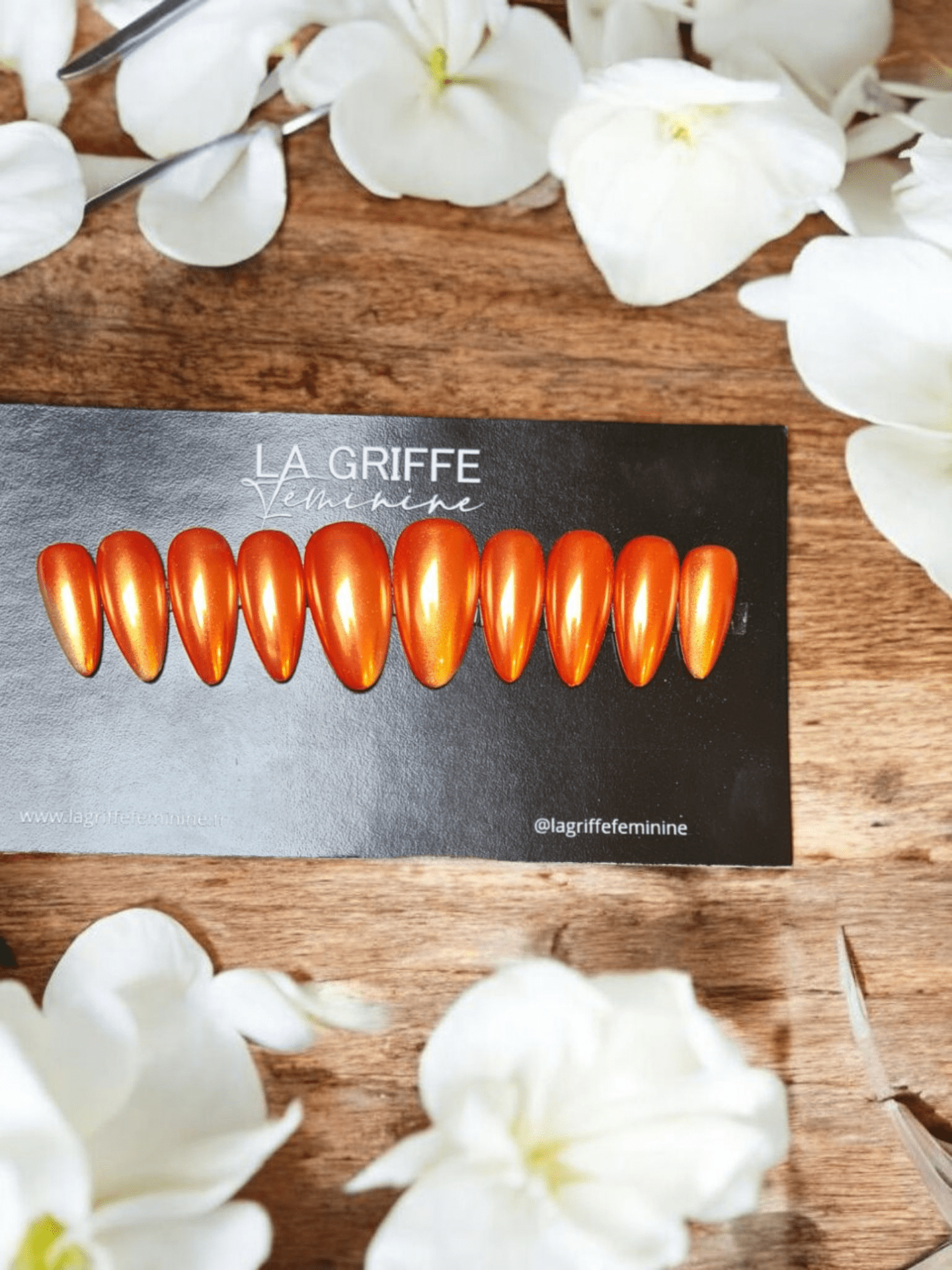 Ajoutez une touche flamboyante à votre look avec notre kit de press on nails chromé. Un rouge orangé qui s'adaptera a toutes vos tenues de soirées ou même pour un look moderne.